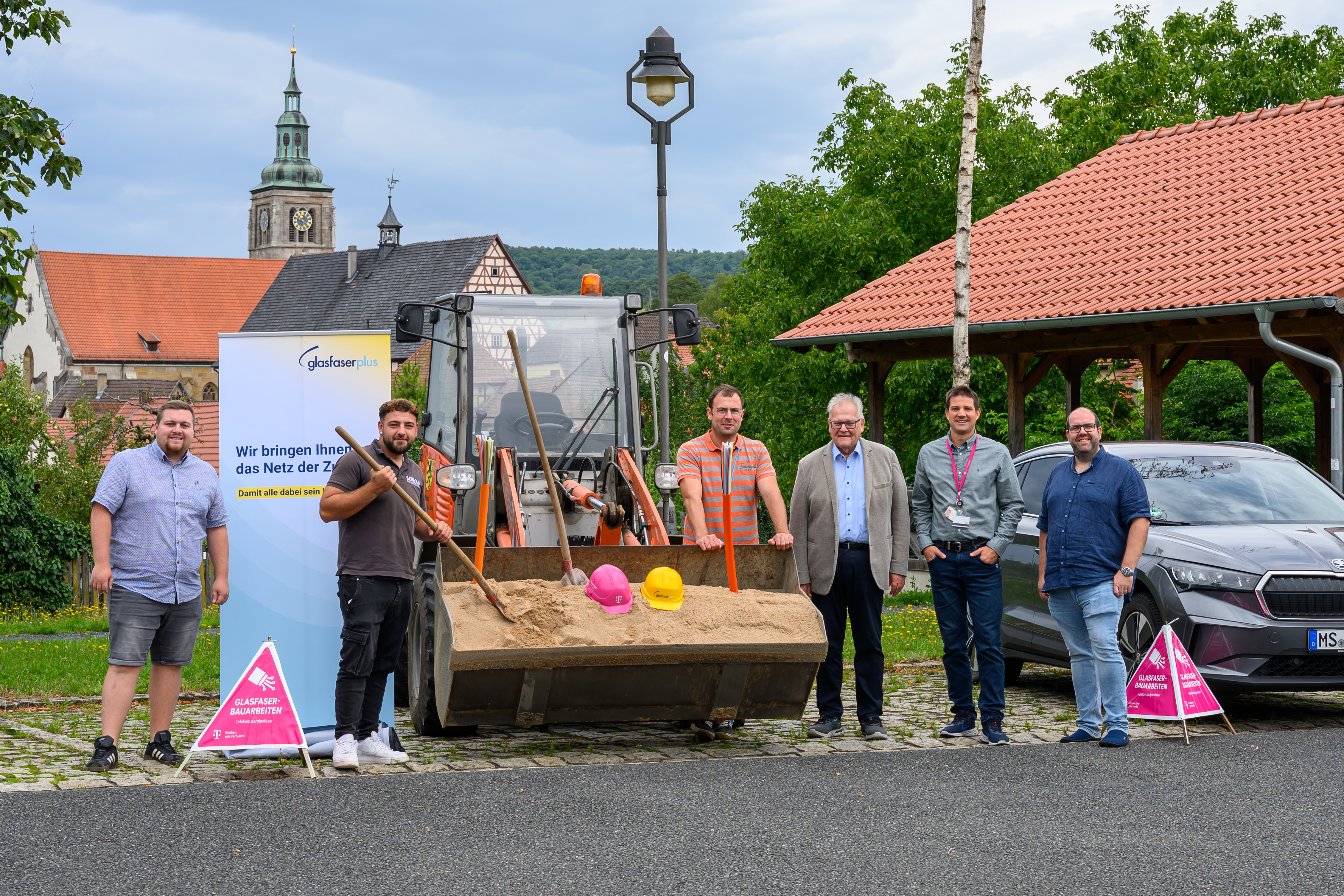 Am 31. Juli 2025 erfolgte der Spatenstich für den Glasfaserausbau in Königsberg i. Bay. Die GlasfaserPlus realisiert in diesem Rahmen rund 700 Glasfaseranschlüsse an 450 Adressen bis ins Haus. Der Baustart erfolgt im August 2025. GlasfaserPlus ist ein Gemeinschaftsunternehmen der Deutschen Telekom und IFM Investors, einem australischen Fondsverwalter, der im Eigentum von Pensionskassen steht und global Pensionsgelder in Infrastrukturunternehmen anlegt. Das neue Netz überträgt Daten stabil und zuverlässig in Gigabitgeschwindigkeit und erlaubt Downloadgeschwindigkeiten von 1 Gbit/s. Alle bekannten Anwendungen können damit problemlos genutzt werden. „Glasfaser bedeutet schnelles und stabiles Internet für unsere Bürgerinnen und Bürger. Und das ist wichtiger denn je. Denn mit dieser modernen Technologie steigt nicht nur die Lebensqualität, sie wirkt sich auch positiv auf den Wert von Immobilien aus. So wird uns bald das ganze Potenzial der digitalen Welt zur Verfügung stehen, ob im Home Office oder beim Surfen. Deswegen freue ich mich über den Start des Glasfaser-Ausbaus“, so Bürgermeister Claus Bittenbrünn. „Die GlasfaserPlus knüpft ihre Ausbauzusage nicht an das Erreichen von Vermarktungsquoten“, so Thomas Hofmann, Kommunalberater Glasfaser bei der Telekom. Seite 1 von 3 „Die Kunden müssen selbst aktiv werden und ihren Glasfaseranschluss buchen. Dies ist beispielsweise direkt online bei der Telekom, im T-Shop oder Fachhandel möglich.“ „In Lichtgeschwindigkeit surfen, stabil streamen oder per Video kommunizieren ist schon lange kein Luxus mehr, sondern für mehr und mehr Menschen Basis ihres täglichen Lebens. Mit dem Ausbau des Glasfasernetzes treiben wir darum konsequent die Verbreitung einer Versorgungsstruktur voran, die auch den ländlichen Raum an der Digitalisierung teilhaben lässt“, so Jens Berwig, Chief Commercial Officer bei GlasfaserPlus.