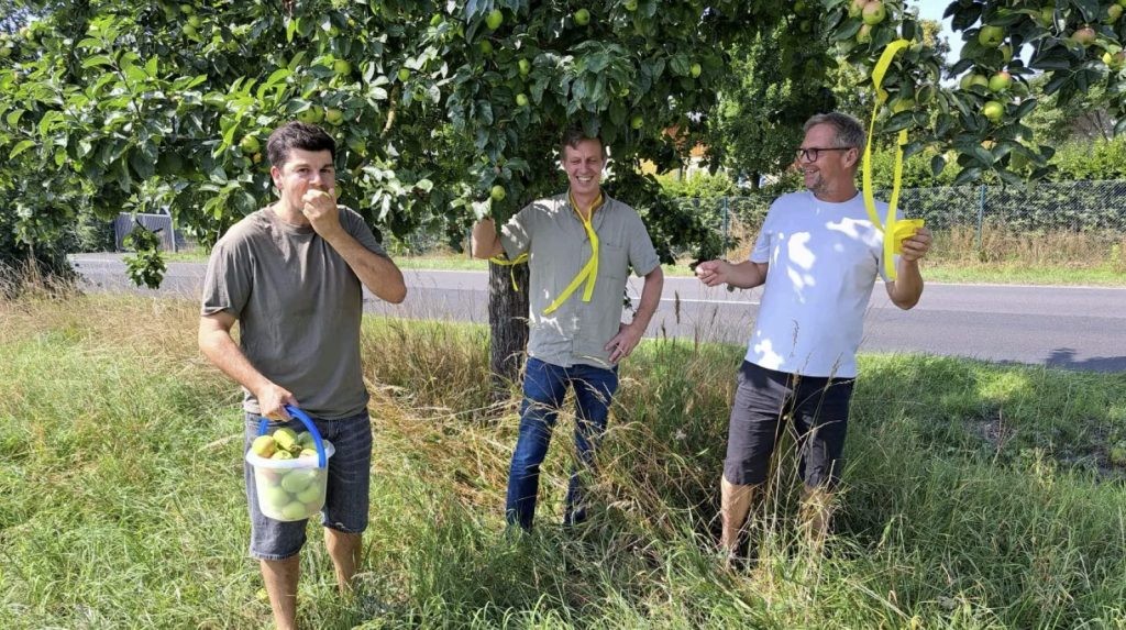 Bäume, die mit einem gelben Band markiert sind, dürfen von allen frei und kostenlos abgeerntet werden. So bleibt wertvolles Obst nicht ungenutzt – und wir alle profitieren von regionalen, frischen Früchten.